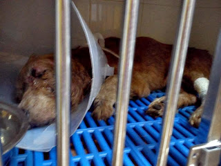 He is Jasper, 8 years old. Our Indian friend witnessed the scene. Jasper being hit twice by the car, and the driver fled away immediately after the accident. He dying and lying on the road side with all those flies circulating around him. Fortunately, he is saved with the immediate medical treatment.